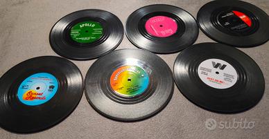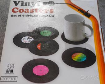 Sottobicchieri retrò a forma di dischi in vinile/LP con la scatola originale.