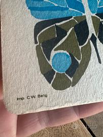Set di quattro sottobicchieri con un design a farfalla. Perfetti per proteggere le tue superfici con stile. - Motivo a farfalla stilizzato. - Realizzati in carta resistente. Sottobicchieri vintage Belgio anni 60 disegno farfalla acquerello design. 9,5x9,5cm. In cartone pesante, lievi segni del tempo ai bordi. Perfetti per una mise en place vintage o per riuso creativo. #sottobicchieri #sottobicchiere #farfalla #butterfly #miseenplace #vintage #sousleverre #coaster #vintagecoaster #set #vintageset