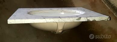 Piano lavabo in marmo (75×55×3) con sotto-lavabo in ceramica bianca con foro ovale 33×49 Scambio a mano perché pesante.