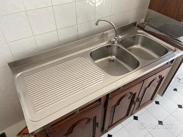 Cucina In ROVERE Base lavandino con lavandino Franke in acciaio a due vaschette con piano appoggio sx e ulteriore base Sx lunghezza 135 cm , prof. 55,5 h 84 scolapiatti + pensile cm 1,73,5 x h 60 prof 38 Pensile vano Cappa 60 x 48 prof x 60 h