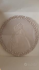 Sottopentola in ceramica kergres decorato con smalto lucido, colore tortora/beige. Completo di scatola originale .misura: 16 cm.Decoro in rilievo