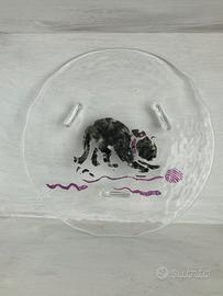 Un simpatico sottopentola in vetro, perfetto per proteggere le tue superfici con stile. Presenta un disegno di un gatto che gioca con un gomitolo di lana.