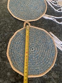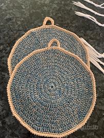 coppia di presine consistenti8,€( sono due ma assemblate insieme)all'uncinetto lavorate a mano, nuove,un tocco di colore per qualsiasi cucina+due sempre fatte a mano di cotone 5€