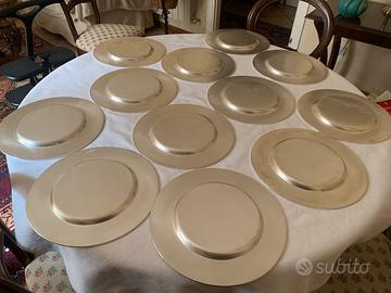 12 sottopiatti argentati del diametro di 30 cm. Solo due piatti sono sfrisati.