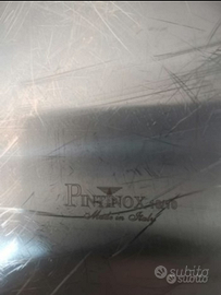 Sottopiatti argentati 18/10 inox, da 30 cm con bordino dorato, tenuti bene.