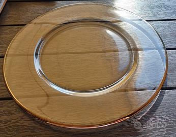 N.6 sottopiatti diametro 30 cm in vetro trasparente con bordo argento