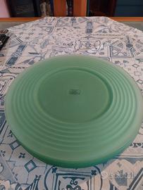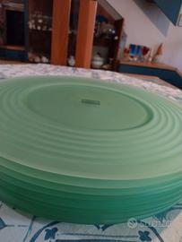8 sottopiatti in vetro verde, eseguiti a mano da maestri vetrai. Fanno parte di lista nozze anni 90. Diametro 34. Usati forse una volta (forse mai) non ricordo