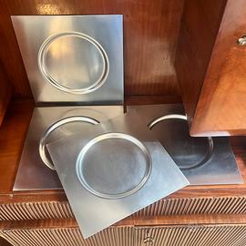 Funzione: Sono utilizzati come sottopiatti (charger plates), offrendo una base elegante per i piatti da portata ed evitando graffi sulla superficie del tavolo.