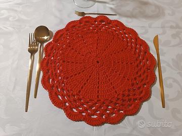 6 sottopiatti rossi in cordino ad uncinetto con bordino in lurex oro