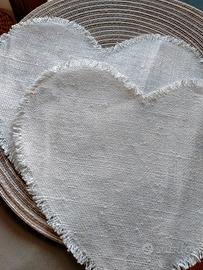 Due tovagliette per colazione o sottopiatti in LINO , nuovi ,made in Italy, a forma di cuore. Prezzo su richiesta