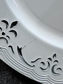 Sottopiatto in plastica , 33x33 decorato, stile shabby, ottimo per abbellire credenze, tavole, vetrine o pareti o come idea regalo; presenta die piccoli segni come da foto ma ancora molto valido ed efficiente