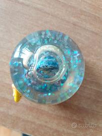 Palla di vetro souvenir di Corfù con base decorata. - Base con pesci e coralli. - Scritta CORFU sulla base.