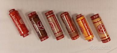 vendo 12 spagnolette tre cerchi rosso ,100% cotone per cucito titolo 50 .colori assortiti come foto