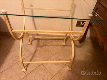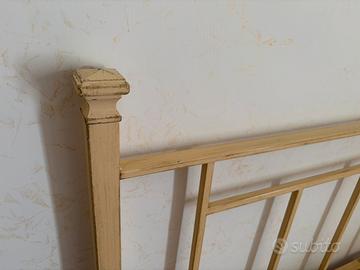 Vendo spalliera e pediera letto matrimoniale in ferro battuto beige e oro e tacolino con ripiano in vetro uguale. In ottimo stato