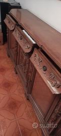 sparecchia tavola in legno con intarsi 3 cassetti, 5 ante misura 2,35 x96 x48