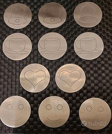 SPARGI CACAO/CIOCCOLATO/NESQUIK ECC. BRANDANI IN ACCIAIO INOX CON 12 FORMINE IN ACCIAIO, PIÙ DUE RICAMBI PER PERSONALIZZARE OGNI VOSTRO CAFFÈ/CAPPUCCINO/CIOCCOLATA/DOLCE/TORTA/GELATO/GRANITA ECC.