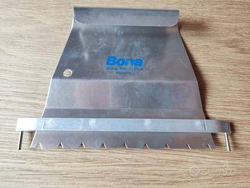questa spatola della nota marca di collanti"Bona" serve per stendere una quantità di collante di spessore sempre costante in modo che la colla Bona Quantum T fuga da barriera all'umidità.