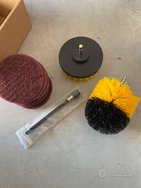 3 Pezzi Spazzola per Trapano + 8 Pezzi Pagliette Abrasive per Avvitatore + Un'asta di Prolunga da 150 mm Kit Spazzole di Pulizia per Toilette Cucina Bagno Doccia Piastrelle Lavello Auto