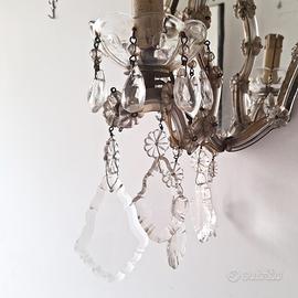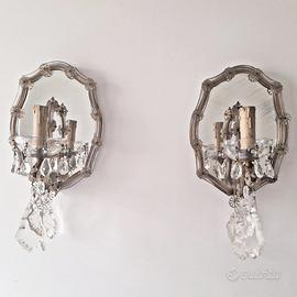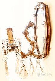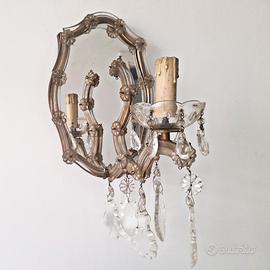 Due lampade da parete con specchi mossi con cortice e portalume in vetro, murrine di murano e pendenti in cristallo trasparente. Lo stile è tipico dell'800 veneziano, Maria Teresa, sono risalenti probabilmente agli anni '50.
