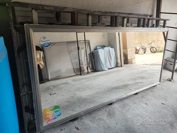 Vendo 4 specchi 1,10m x 2,45m con struttura rinforzata in ferro e cornice in acciaio per arredo negozio. 350€ a specchio