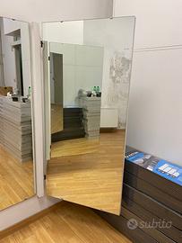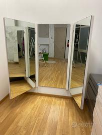 vendo tre specchi. 1 fisso 2 pieghevoli con struttura in legno. Uno specchio é leggermente rotto in un angolo. Valuto offerte sensate