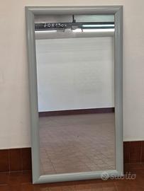Vendo 7 specchi da parete in ottime condizioni, adatti sia per uso domestico che commerciale (negozio, palestra, showroom). Dimensioni: n.5 specchi: 45,5 x 140 cm circa n.2 specchi: 70 x 130 cm circa Caratteristiche: Cornice robusta in legno Vetro in ottimo stato Ottima resa luminosa Gli specchi sono predisposti per utilizzo su struttura espositiva, ma possono essere facilmente adattati per fissaggio a parete è sufficiente un gancio standard (costo minimo) Prezzi: 30€ cad. (stretti) 50€ cad. (grandi) Prezzo lotto: 210€ trattabili Ritiro a mano a Brescia Disponibili subito