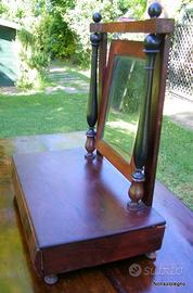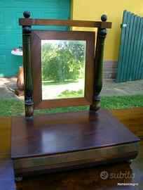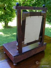 Preziosa e rara specchiera Impero a ribalta Psiche, di provenienza Emiliana, costruita nella seconda metà dell’800, in noce massello con lastrone di mogano.