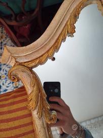 Caratteristiche: Presenta una cornice in legno intagliato con elementi dorati e una forma sagomata tipica dell'antiquariato. H max 1,06cm Larghezza 60cm