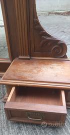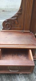 Specchiera antica in legno con cassetti laterali. Ben tenuta. Dimensioni in cm: H 136 L 114 P 25