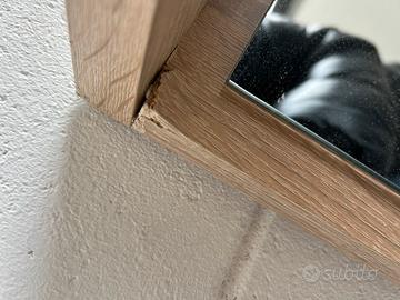 Come da foto vendo una specchiera appendiabiti da muro con 6 ganci e il colore della struttura è rovere in buone condizioni Le dimensioni sono: Larghezza totale 100 cm e lunghezza massima 112 cm Solo specchio 30 cm largo e lungo 76 cm La distanza tra i perni posteriori è 82-86 circa a seconda di sove avete i chiodi al muro Gli unici due difetti sono presenti nelle foto : un gancio spezzato che puo essere sostituito (anche in modo estroso cambiandoli con alcuni di design) e un punto in cui il legno è rovinato. Possiamo accordarci sul ritiro in zona milano ovest o su un punto di incontro, non spedisco