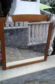 Offro, causa trasloco, splendita specchiera x bagno in "arte povera" con cornice in legno massello tinta noce con le sue rispettive 2 appliques in ottone brunito e vetro satinato, integra e perfetta.Misure:larghezza 1.04m/altezza 1.13.5m/spessore 2.5cm.GRADITI CONTATTI al 3477210184.Prezzo 140euro.Possibilità di trasporto, previo accordi.RISPONDO ESCLUSIVAMENTE A CONTATTI TELEFONICI.GRAZIE
