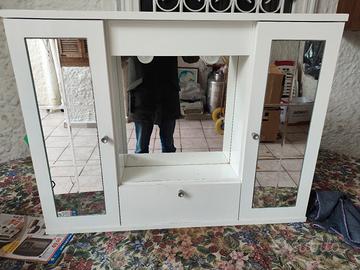privato vendo per inutilizzo bellissima specchiera bagno in legno colore bianco ...co 2 ante . e cofanetto ....sano perfetto pati al nuovo ... due lampadine .....