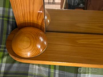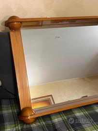 Speccchiera bagno Vintage in legno di frassino, ingombro della cornice 83 cm di larghezza x 62 cm di altezza x 11 cm di profondità. L'ingombro dello specchio tenendo conto anche della mensola con le 4 sfere di design è di 89,5 cm di larghezza x 68,5 cm di altezza x 11 cm di profondità.