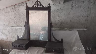 Specchiera in Legno di inizio '900 interamente fatta a mano e dotata di n. 2 cassettini portaoggetti..