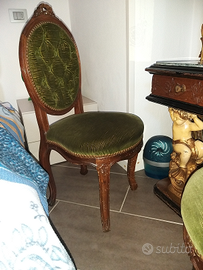 Specchiera con tavola in pietra corredata da uno sgabello e due seggioline Antica