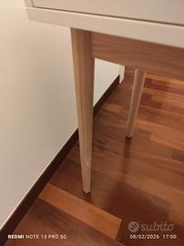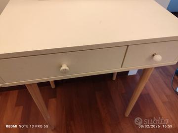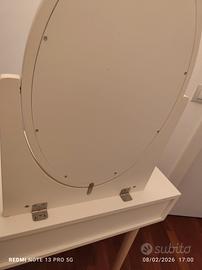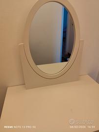 specchio con mobiletto per il trucco, con due cassetti. Maison di monde. Bianca con gambe in legno chiaro.