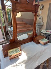 Specchiera da appoggiare a como' , con cassettini, in legno, color noce, restaurata, no spedizione solo ritiro, prezzo trattabile.