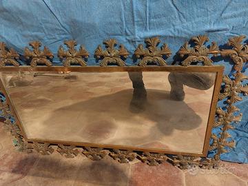Specchiera vecchia con cornice in metallo bronzeo lavorato. Specchio ancora integro. solo ritiro