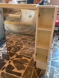 Specchiera con mobile tenuta bene, ma nel tempo ha portato i segni di usura, come é visibile in foto. É presente anche, già inserito, il collegamento per la luce.