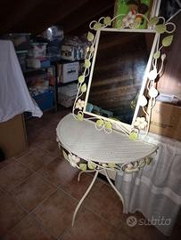 Vendo specchiera con consolle in ferro decorato, colore bianco avorio, come da foto reali.
