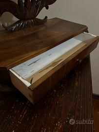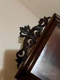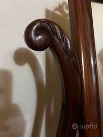 Questa è una specchiera da appoggio (spesso chiamata psyché o specchio da toeletta) in stile Luigi Filippo o secondo Impero, databile verosimilmente tra la metà e la fine dell'Ottocento.