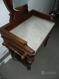 specchiera d'epoca della nonna , dimensioni : lunghezza cm 90 compreso maniglie, profondità cm 52, altezza marmo da terra cm. 70, marmo cm 70x46- specchio ovale cm 47 x 33- ripiano inferiore cm 75x 34- altezza totale cm 146- richiesta euro 120,00 si trova a milano