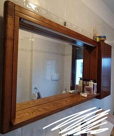 Specchiera in legno 138 x 72 x 15 cm con luce neon e mobiletto contenitore. Consegna a mano, smontaggio e trasporto a carico del compratore.