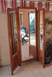 Vendesi antica specchiera da sarto a tre ante in legno,specchi perfetti, l'unico difetto è un piccolo foro nell' anta centrale nella parte posteriore. Altezza 1.90m, ampiezza 1.50m. Prezzo 50 euro non trattabili