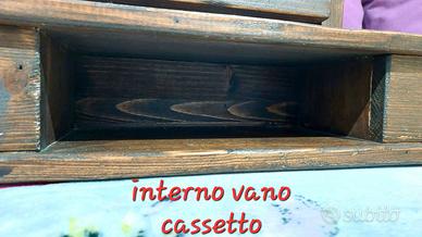 Specchiera per trucco in stile arte povera in legno massello colore noce scuro completamente fatta a mano. Si può utilizzare con vano aperto o con cassetto portaoggetti diviso in due spazi(estraibile totalmente). Misure: larghezza 45 cm, altezza 50 cm, profondità 15 cm. Interno specchio altezza 27 cm, larghezza 20 cm. Rispondo soltanto all'interno della chat di Subito.