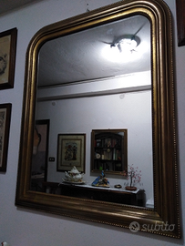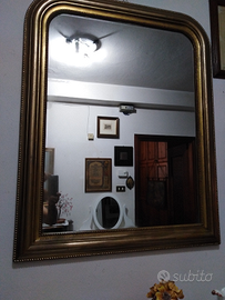 Specchiera in oro vecchio degli anni 50, molto bella e grande in buono stato, misura alta 1 metro x 80 di lunghezza, pronta per appendere sia in camera sopra un como', o in corridoio sopra una consol