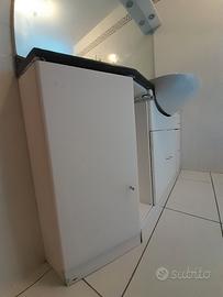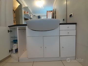 Bel mobile per bagno completo di specchiera, pianale in marmo, lavabo e armadietti riponi tutto. Misure: lunghez