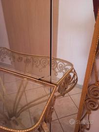 Specchiera degli anni 50 in buone condizioni, la struttura in ferro battuto e in buone condizioni, lo specchio come si vede in foto ha qualche segno del tempo, ma si può sempre fare sostituire.