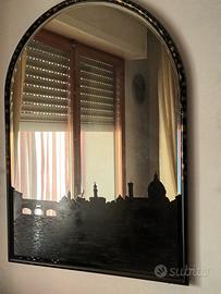 specchiera con cornice modificata nera con stelle oro e dipinto in controluce il duomo, battistero, palazzo del comune ,ponte vecchio, e l'arno.