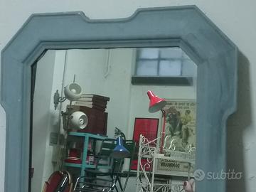 Specchiera in legno dipinta color grigio specchio originale al mercurio Epoca : Ottocento Misure : 88 cm x 68 cm